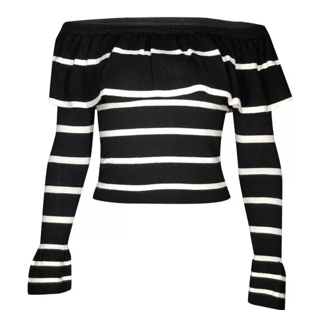 [即納]ボーダーオフショルダートップス